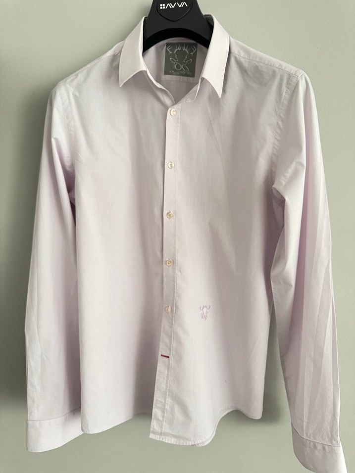 Pamuk kumaştan üretilmiş, düğmeli, yakalı ve uzun kollu beyaz toz pembe erkek gömleği. Normal boy ve regular fit kesime sahiptir, ofis ve günlük kullanıma uygundur. Bir kere kullanılıp yıkanmıştır.iki koltuk altı arası 58 cm dir.