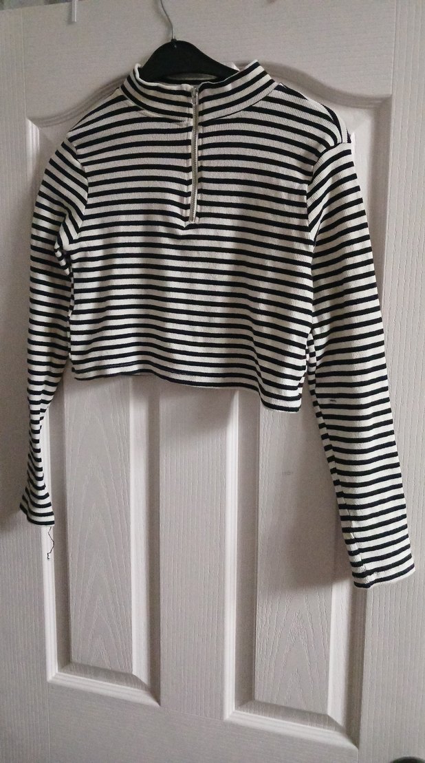 Pamuklu, uzun kollu, fermuarlı ve yüksek yakalı kadın kazak. Çizgili deseni ve dar kesimiyle günlük kullanıma uygundur. açık göbek sekillidr iade kabul edilmeyecek