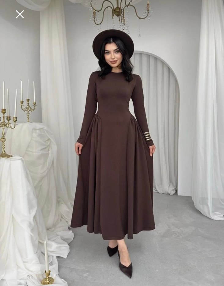 Uzun kollu ve salaş kesime sahip bu kahverengi elbise, kayık yaka ve ipeksi kumaşıyla günlük kullanıma uygun 2 kere giyildi yepyenidir.