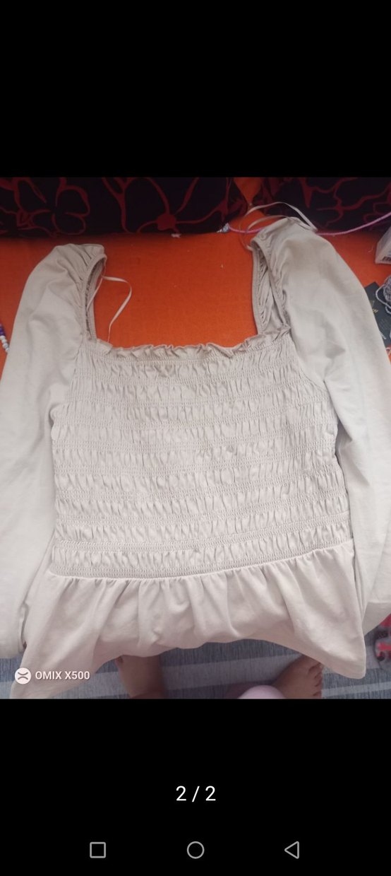 Bej renkli kadın bluz, uzun kollu ve kayık yaka tasarıma sahiptir. Fırfır detayları ve vücuda oturan kesimiyle rahat bir günlük stil sunar. primark marka