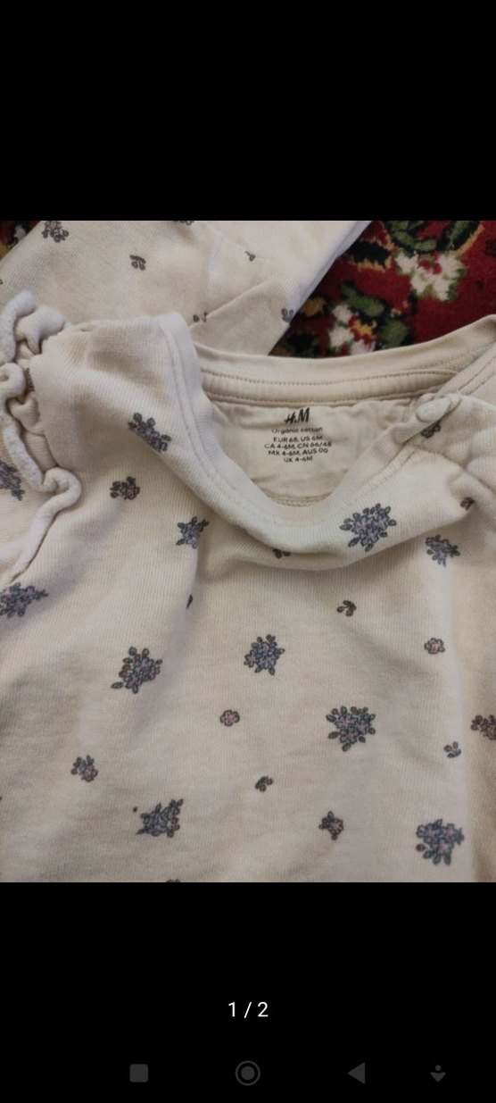 Beyaz renkli, uzun kollu, yuvarlak yakalı kız bebek body, gri çiçek desenli ve omuzlarda fırfır detaylıdır.
