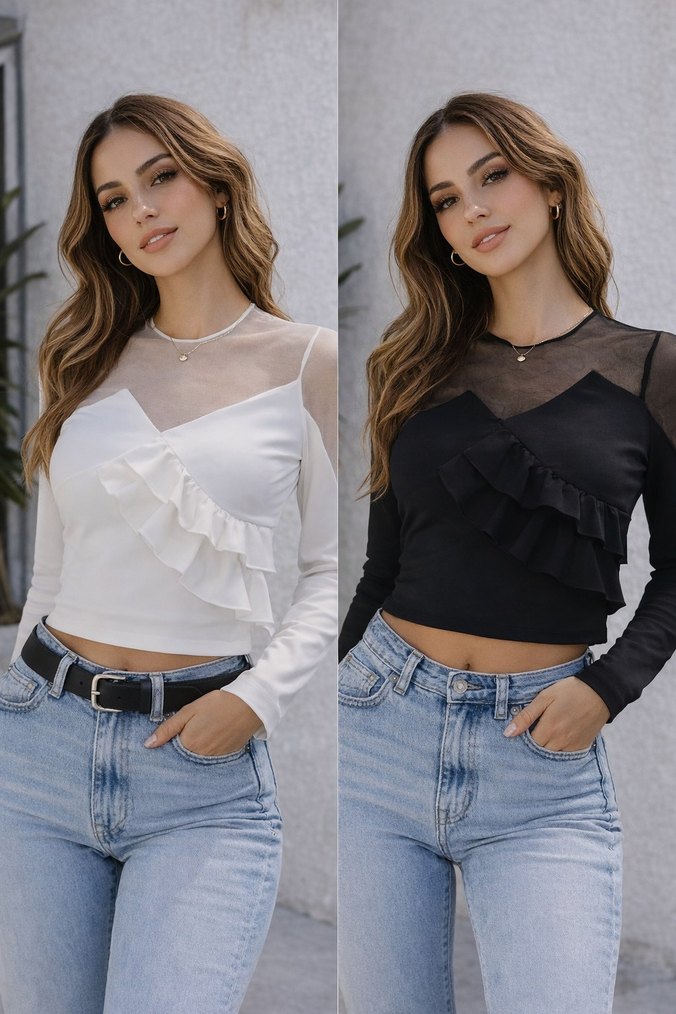 Uzun Kollu Fırfırlı Mini Bluz (ikili)