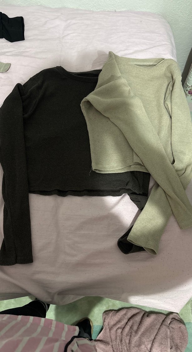 Yumuşak keten kumaştan, uzun kollu, bisiklet yaka, fit kesim triko kazaklar. Koyu yeşil ve bej renk seçenekleriyle günlük kullanım için uygundur.