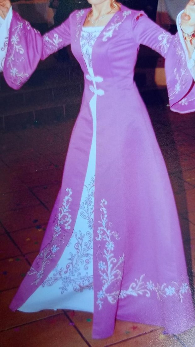 fuşya renkte, uzun kollu, drapeli ve nakışlı bindallı. Straplez yaka ve regular fit ile geleneksel ve gotik tarzı bir araya getirir. Düğünler için uygun.