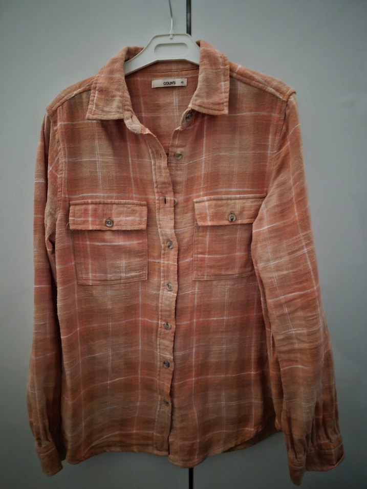 uzun kollu,cepli,düğmeli gömlek. Rahat ve günlük sokak stili için uygundur. sayılı giyildi yeni gibidir.xs s hatta m bile uyumludur üst bolgeniz zayıfsa