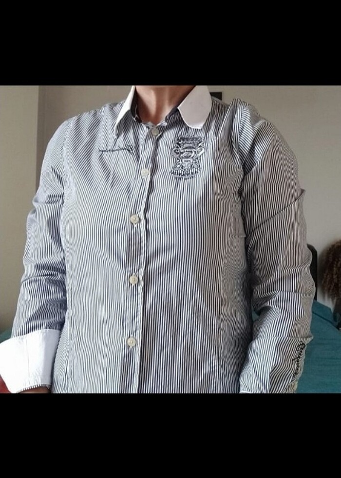 Siyah beyaz çizgili uzun kollu 38 beden galvanni marka günlük gömlek
