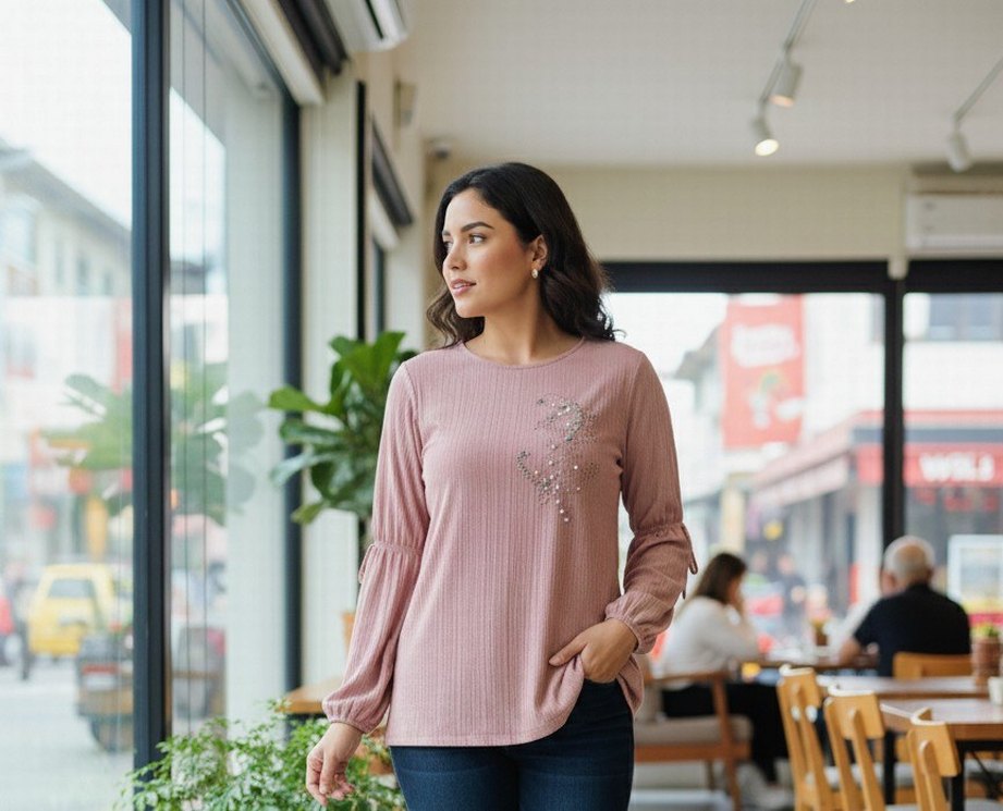 pastel renkli, nakış detaylı gömlek Uzun kollu, yuvarlak yaka ve bol kesimdir. Günlük rahat kullanıma uygundur.
