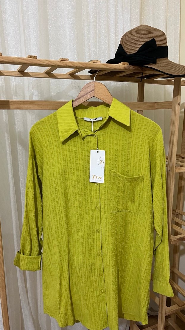 uzun kollu, düğmeli ve yakalı, rahat kesim takım