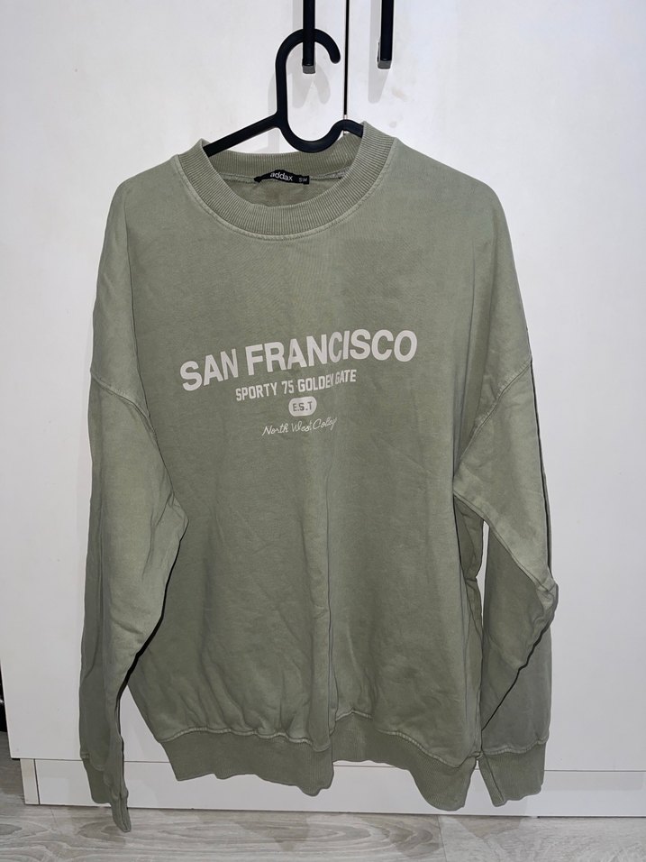 Yeşil renkte, uzun kollu, salaş kesim ve yuvarlak yakalı bu sweatshirt, önünde "SAN FRANCISCO" baskısı bulunur. Yumuşak sentetik kumaştan üretilmiş, günlük kullanıma uygundur.