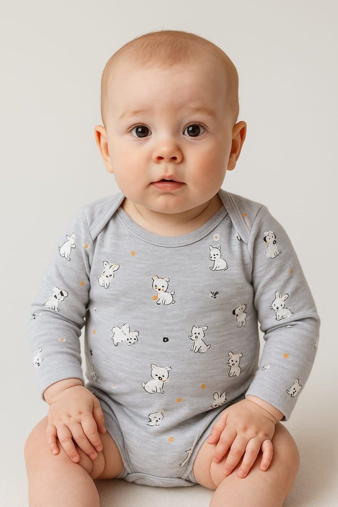 Gri renkte, uzun kollu, nakış desenli ve örme dokulu pamuklu bebek body. Bisiklet yaka ve streetwear tarzında tasarlanmıştır. Hem kız hem erkek için uygundur. marka temsilidir 1 yaş 80 cm 1.5 yaş 86 cm 2 yaş 92 cm 3 yaş 98 cm bedenleri mevcuttur.