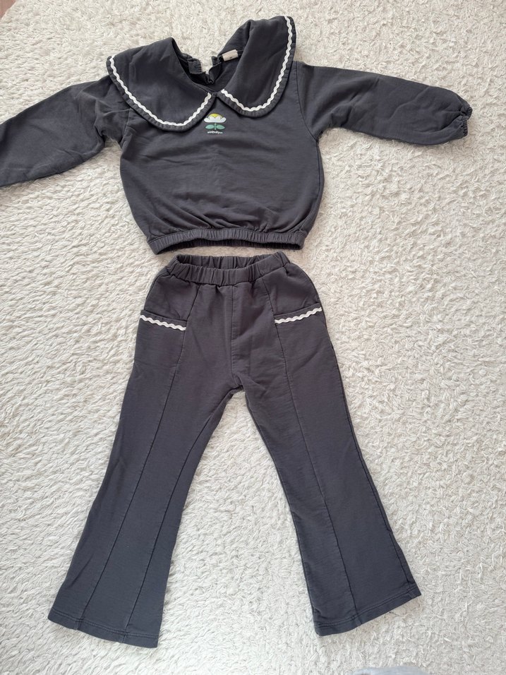 Uzun kollu, yakası dantel detaylı gri bebek kız takımı, ceplerde şık süslemelerle rahat ve şık bir görünüm sunar. Fazla giyilmedi bedeni küçüldü kızm giymek istemiyor o yüzden satılık