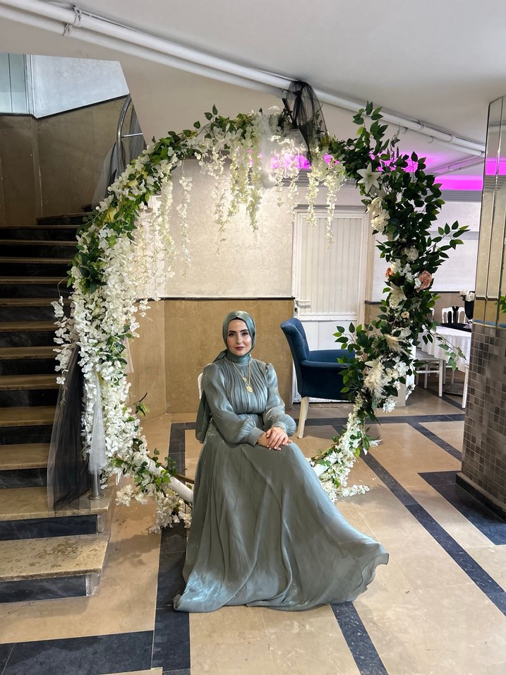 Uzun Kollu Gri Bohem Tesettür Abiye