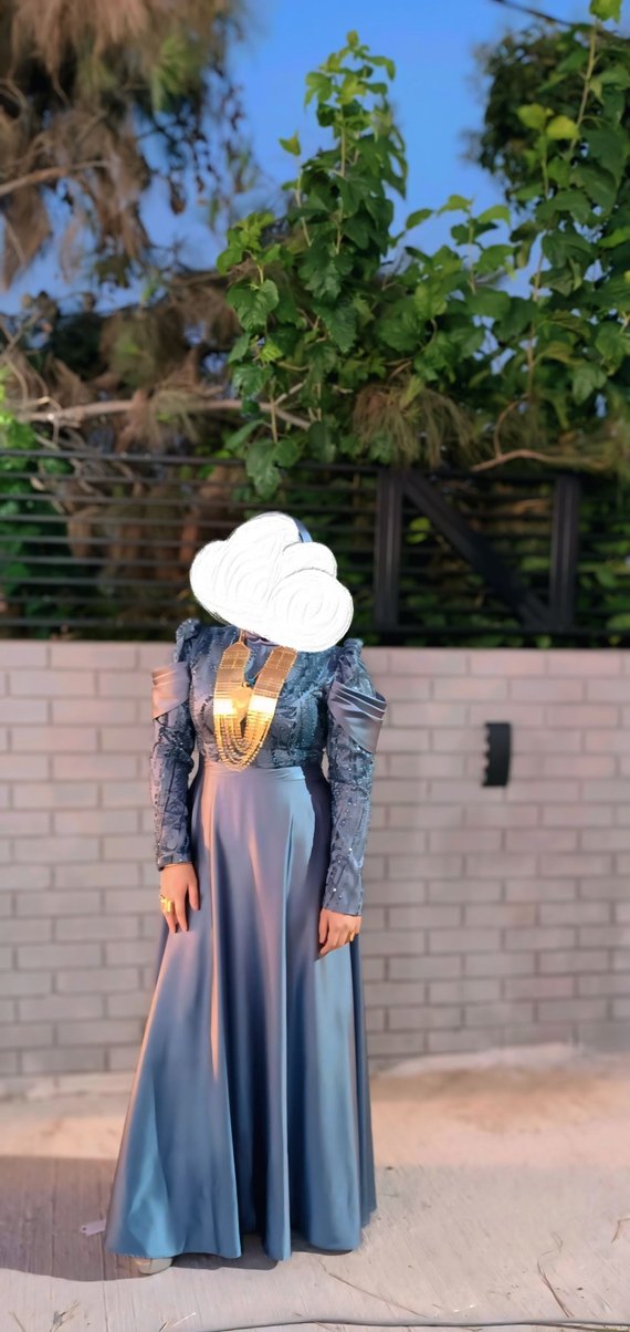 Bu mütevazı, vücuda oturan abiye elbise yüksek yakalı ve uzun kolludur. Bağlama desenli ve drapeli tasarımıyla avant-garde dokunuş sunar, düğünler için uygundur.