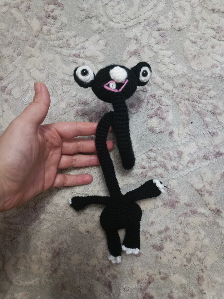 El yapımı, uzun kollu gri peluş oyuncak, büyük gözleri ve küçük ağzıyla yumuşak malzemeden yapılmıştır. istenilen renk örülür