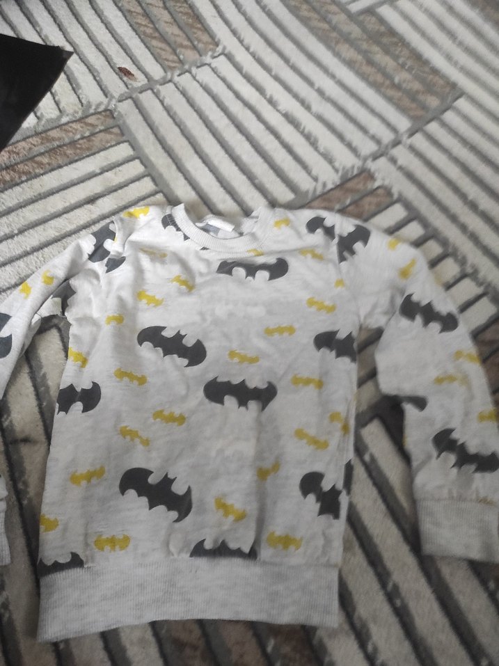 Gri renkli, uzun kollu erkek çocuk sweatshirtü, gevşek kesim ve örme sentetik kumaştan üretilmiştir. Bisiklet yaka ve baskılı yarasa desenleriyle sokak stili sunar.