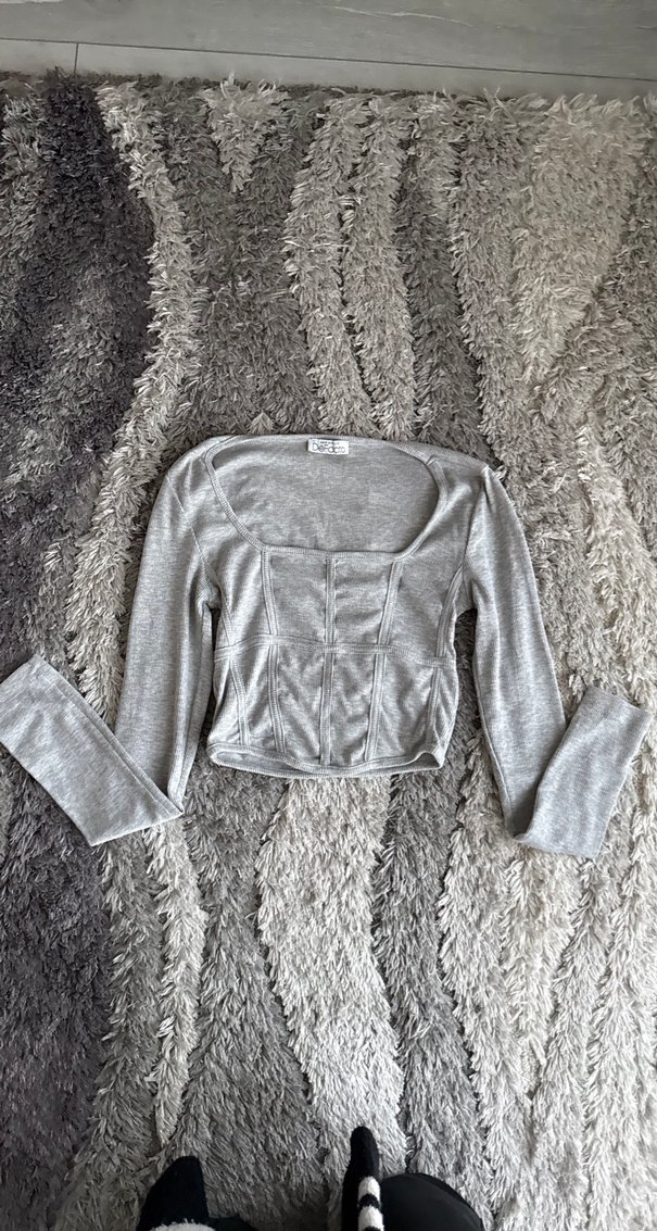 Uzun Kollu Gri Kadın Bluz