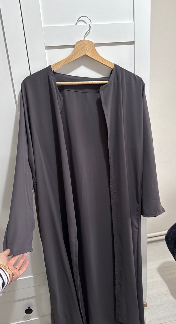 Uzun boylu ve bol kesimli kadın kimono, minimalist ve normcore tarzda. Uzun kollu ve desensiz gri renkte, sade ve şık görünüm sağlar.