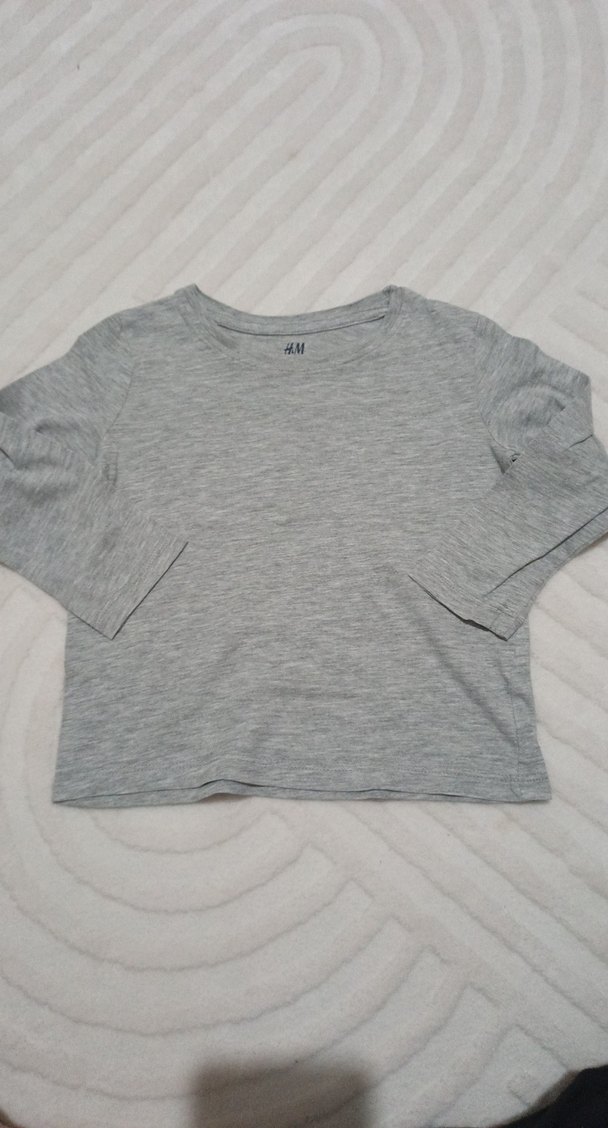 Uzun kollu, bisiklet yaka ve bol kesim kız çocuk tişörtü. Yumuşak keten kumaştan yapılmış, sade gri renkte ve rahat sokak stili için uygun.