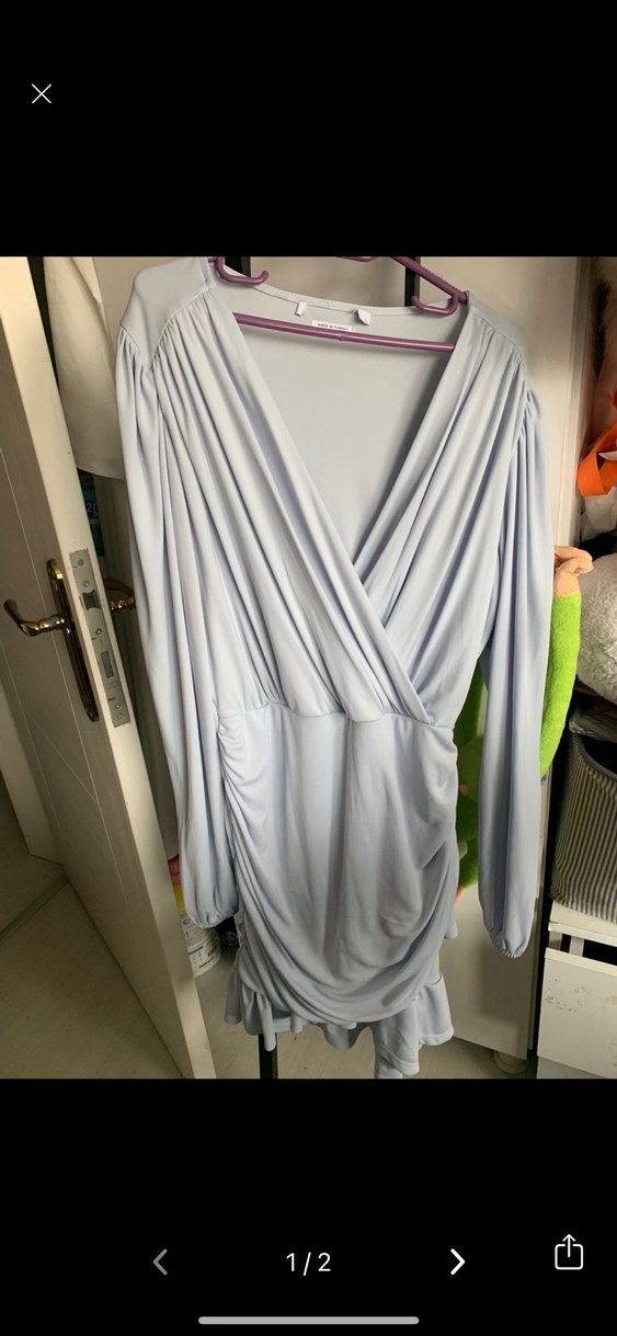 V yaka, drapeli ve uzun kollu gri midi elbise, sade ve şık tasarımıyla günlük kullanıma uygundur. Minimalist ve modern tarzda.