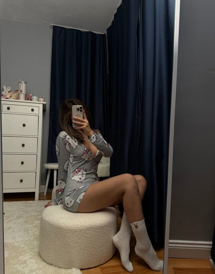 Uzun kollu, yüksek yakalı ve transparan bağlama desenli gri mini elbise, yumuşak sentetik kumaştan rahat bir sokak stili sunar. ️
