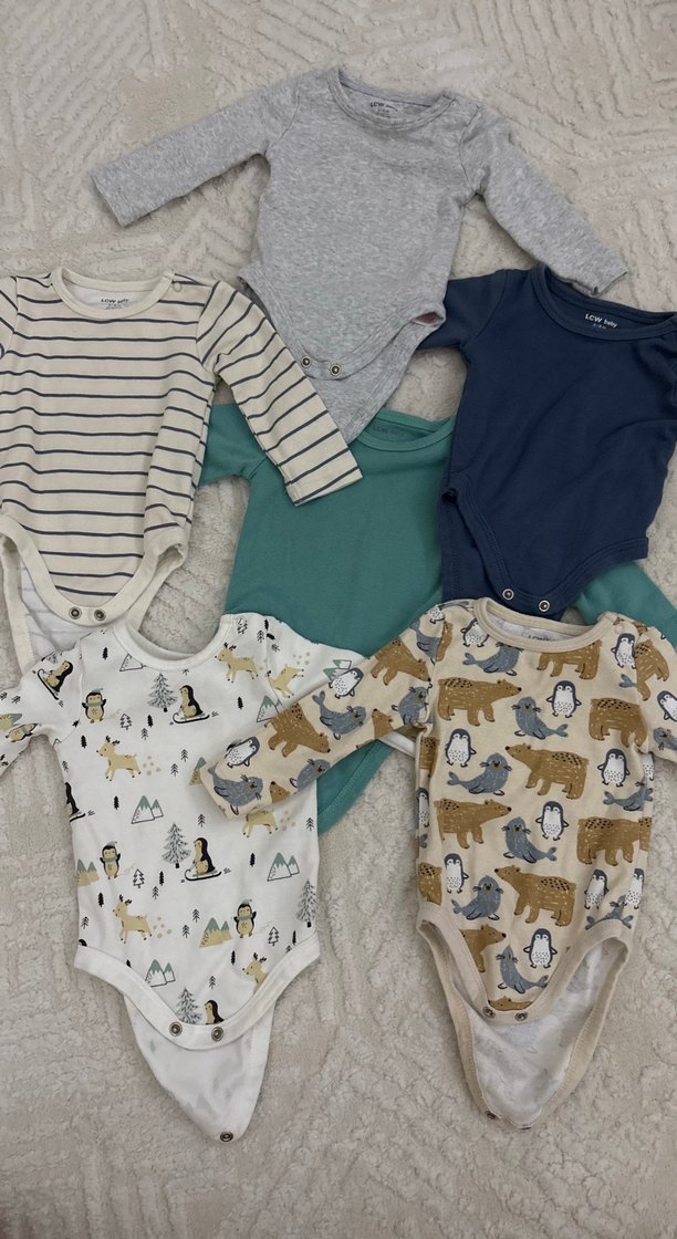 Hepsi çok az kullanıldı en fazla kullandığımız 3 kere giyilmiştir. Yumuşak pamuktan yapılmış, uzun kollu, gri renkli, yuvarlak yakalı ve örme dokulu bebek body. 6tane satışta 1 tanede yakasında leke olan bir zıbında hediye edeceğim çok belli değil isteyene fotoğrafını atarım. Toplam 7 ürün. Hepsi 3-6 ay.