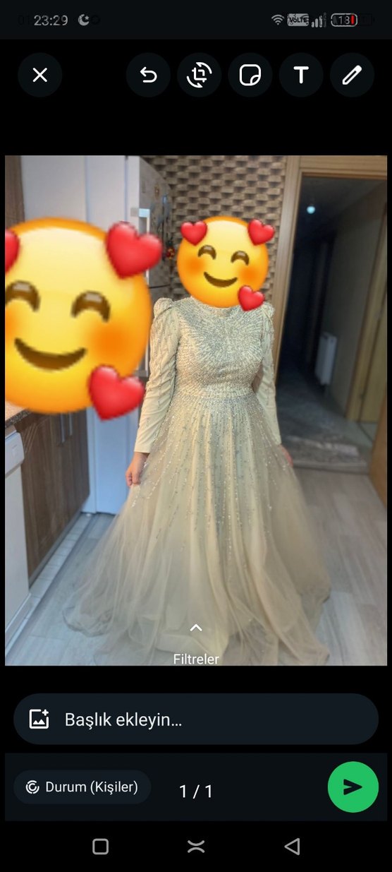 Uzun kollu, yüksek yakalı ve payet işlemeli bu gri nişan elbisesi, sade ve şık bir görünüm sunar. Uzun boyu ve modest kesimiyle düğünler için uygundur. ✨