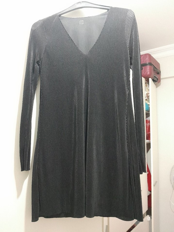 Uzun Kollu Gri Piliseli Midi tunik