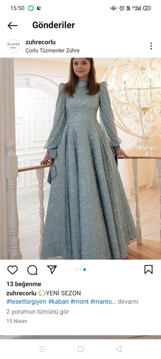Yüksek yakalı, uzun kollu, modern klasik tarzda, simli gri kumaştan yapılmış, düğünlere uygun, klasik zarafette kadın elbisesi. ✨