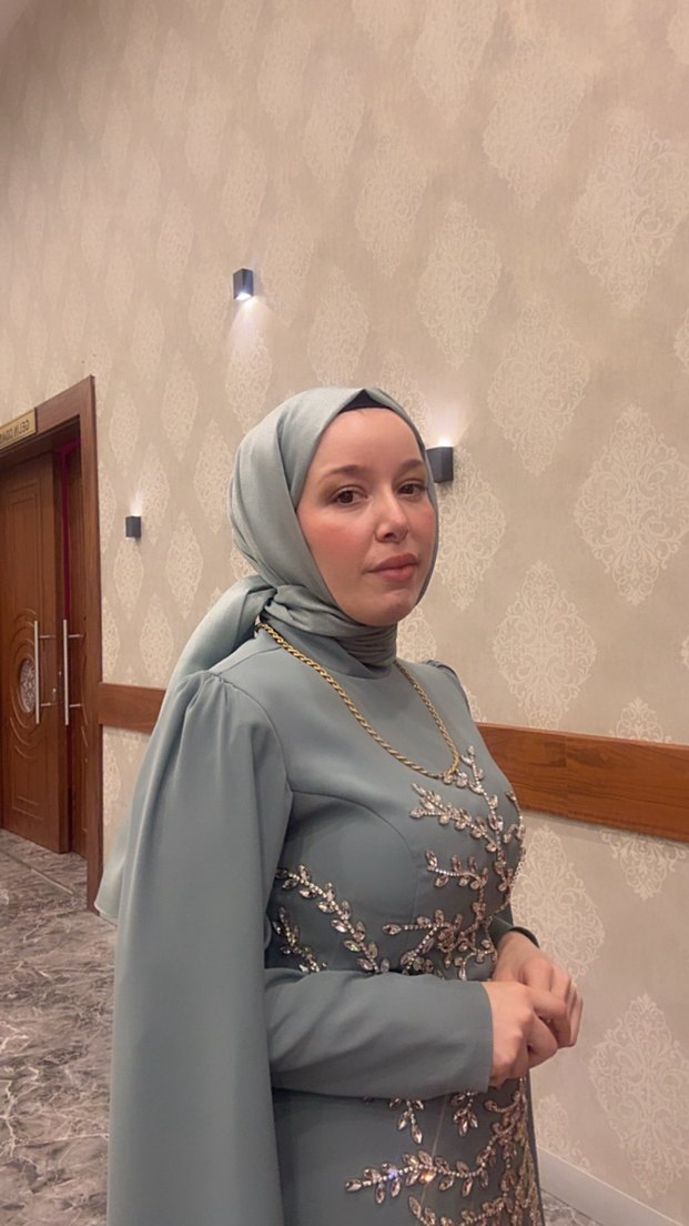 Uzun Kollu Gri Tesettür Henna Elbise