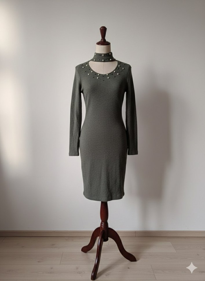 s beden uyumlu kışlık triko elbise inci detaylı dekolteli sıcak tutar. boyun kısmının arkasında ufak defo var giyildiğinde göze çarpmıyor fiyatı ona göre koyuyorum #vintage
