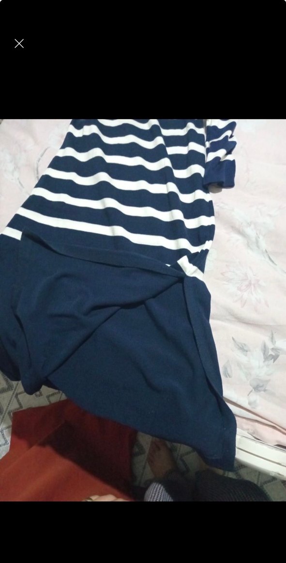 Bu uzun kollu hamile elbisesi, tek renk koyu mavi ve tek parça yapıda. Tekne yaka ve yan yırtmaç detayıyla şık bir görünüm sunar. Rahat kumaştan üretilmiştir.