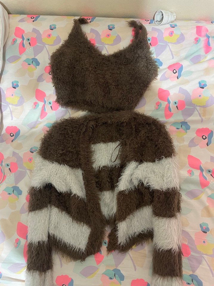 İkili örgü hırka takım, esnek çok yumuşak ve bence çok güzel iki parça. Artık crop giymediğim için satıyorum. 1 kez giydim. L Beden (büstiyer kısmını askısını ben bağladım bir sorunu yok)