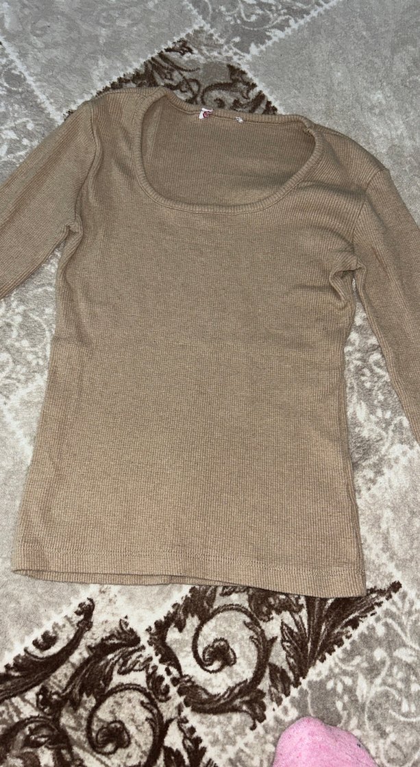 Bej renk, uzun kollu, ince kesim kadın kazağı. Yumuşak sentetik kumaştan örülmüş, gündelik sokak stili için uygun. Az kullanıldı S-M bedene uyar