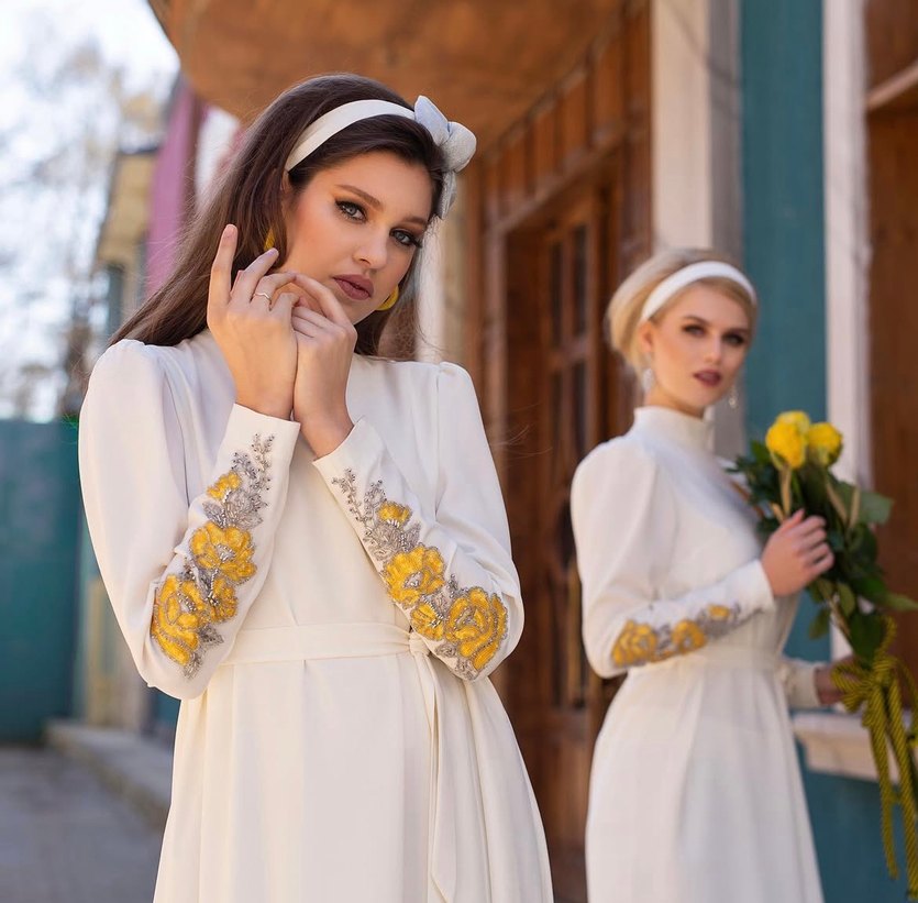 Bu beyaz bohem tarzı tunik, uzun kollarda sarı çiçek işlemeleri, yüksek yakası ve drapeli, regular fit kesimi ile dikkat çekiyor. Senna Design’a ait