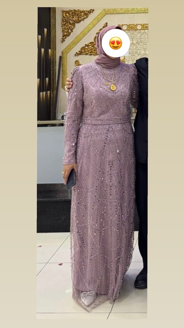 Uzun kollu, bisiklet yaka ve işlemeli detaylara sahip mor abiye elbise, vücuda oturan kesimiyle şık ve gösterişli bir görünüm sunar. ablamın abiyesi abimin düğünü için aldı 4 saat giyildi
