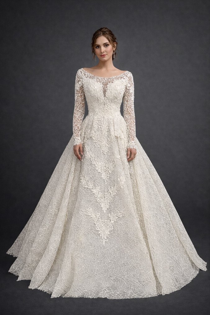 Uzun Kollu İvory Prenses Gelinlik 36-38-40 İpli