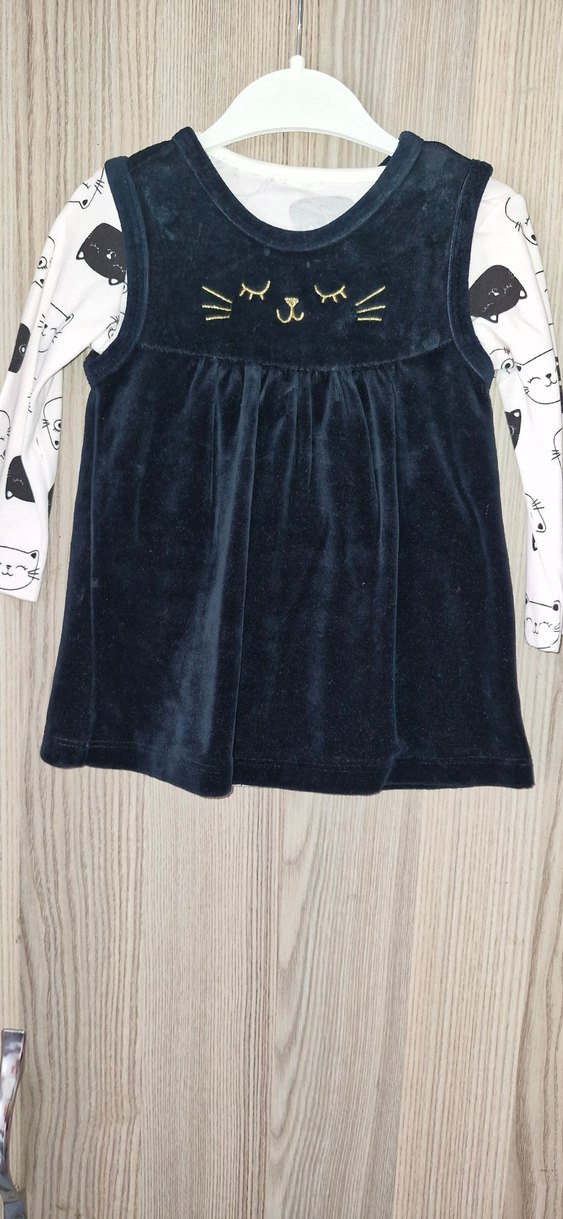 Uzun Kollu Kadife Nakışlı Kız Elbise