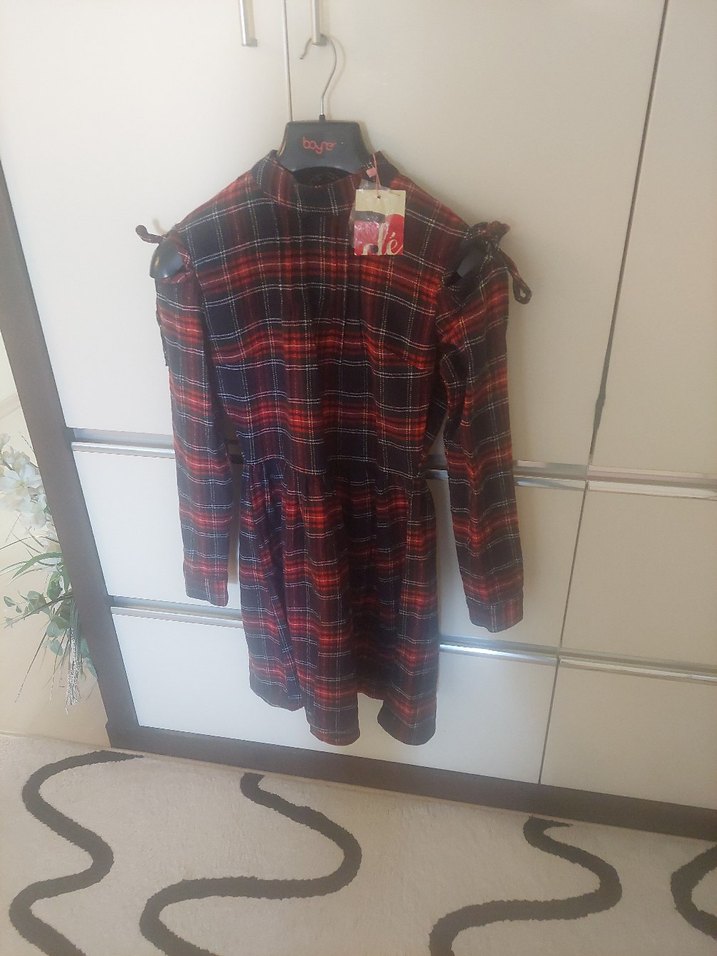 Uzun Kollu kadın 36 beden Ekose Elbise