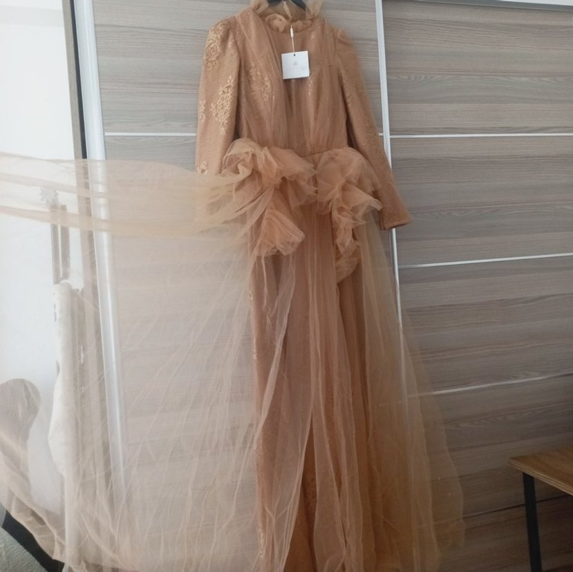 Uzun Kollu Kadın Abiye Elbise
