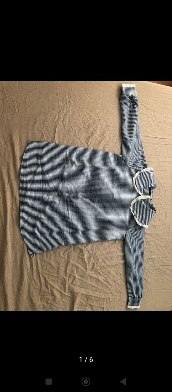 Kadın gömlek, düğmeli ve uzun kollu, gevşek kesimdir. Sentetik kumaştan yapılmış, midi boyda, sade gri renktedir ve günlük kullanıma uygundur.