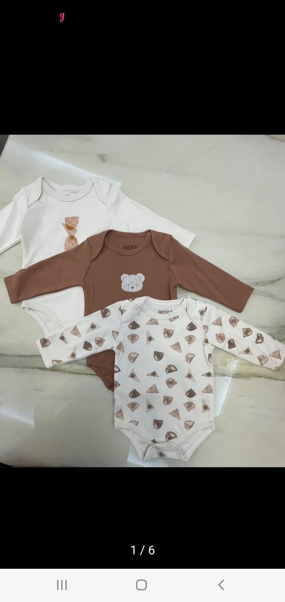 Uzun kollu ve yuvarlak yakalı, yumuşak pastel kahverengi tonunda, sevimli ayıcık baskılı bebek body. Rahat ve şık bir görünüm sunar.