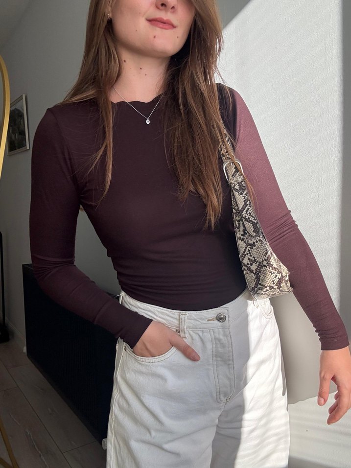 Uzun Kollu Kahverengi Bluz - Görsel 2