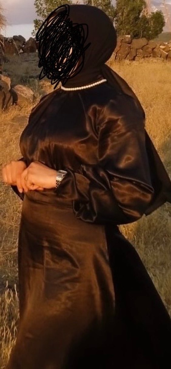 Bu kadın abiye elbise, yüksek yakalı ve uzun kollu olup, drapeli tasarıma sahiptir. Parlak kahverengi kumaşıyla gotik ve mütevazı bir stil sunar.