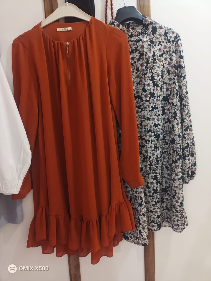 Uzun Kollu Kahverengi Mini Volanlı Tunik
