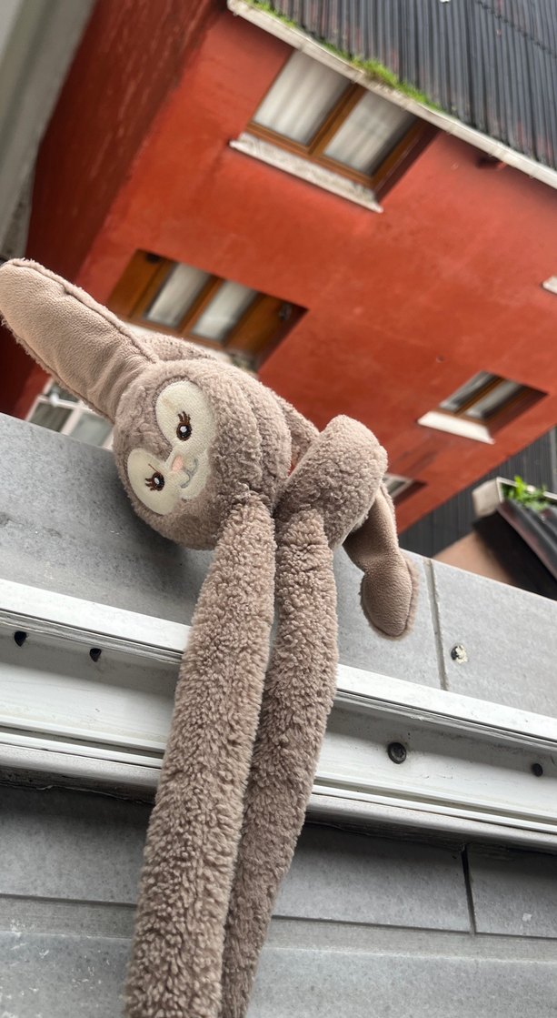 Uzun kollu, yumuşak dokulu kahverengi peluş oyuncak, sevimli yüz detayına sahiptir. Sarılmak ve oynamak için uygundur.