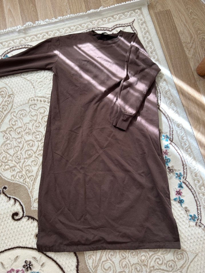 Uzun kollu, yuvarlak yakalı, kahverengi salaş tunik, dökümlü tarzda ve yumuşak sentetik kumaştan üretilmiştir. Günlük rahat kullanıma uygundur.
