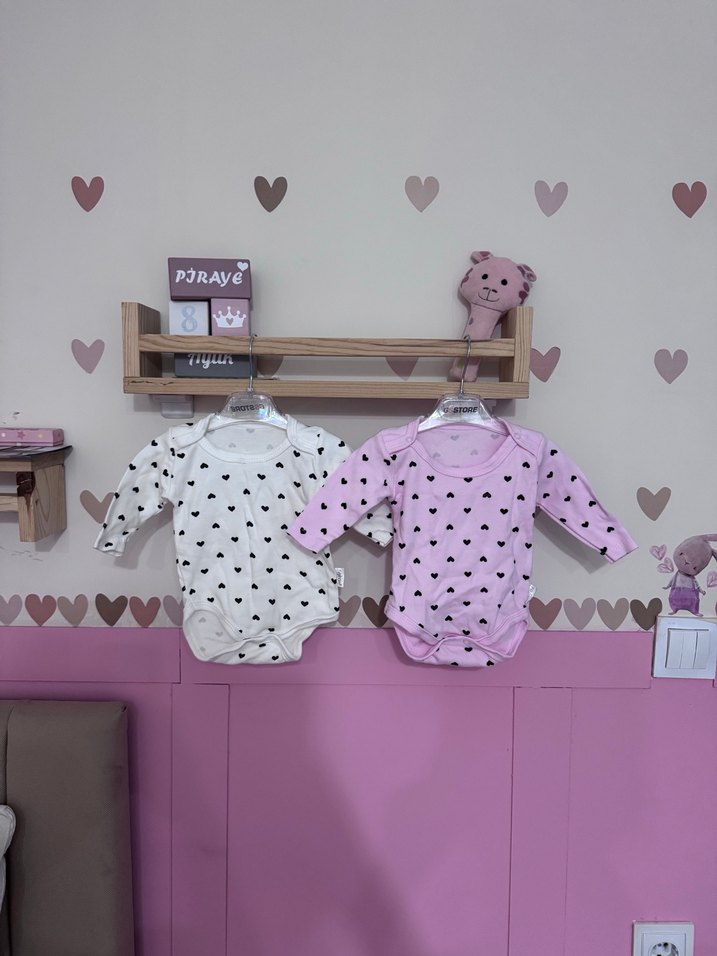 Uzun kollu, V yakalı, örgü dokulu pembe pastel renkli ve kalp desenli kız bebek çıtçıtlı body. Rahat ve yumuşak dokudur. 2 li fiyatı