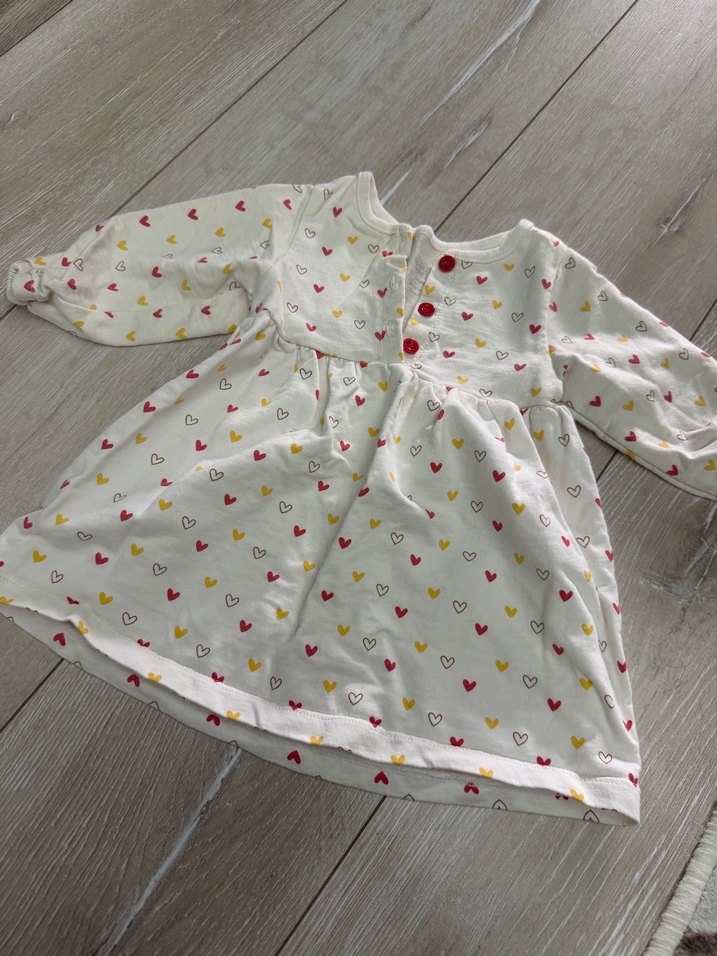 Pamuklu, uzun kollu ve düğmeli bu kız elbisesi, bol kesim ve yuvarlak yakaya sahiptir. Beyaz zemin üzerine kırmızı ve sarı kalp desenleri bulunur. Bohem tarzda şık bir parça. ❤️çok hafif bir lekesi var