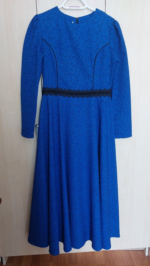 tertemizdir, sadece etiketi kesildi. 38-40 beden. ölçüleri: iki koltukaltı arası mesafe 46 cm, bel 38, kol genişliği 14 15 cm, boy 130 cm ortalama