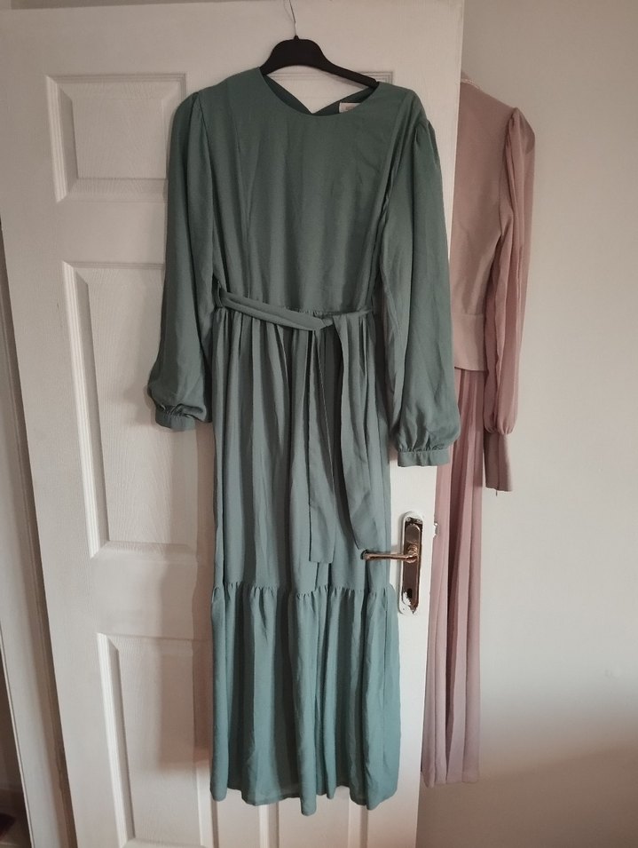 Uzun kollu, kemerli ve yuvarlak yakalı bohem tarzda, rahat kesim elbisedir.sayıli giyildi hiçbir deformesi yok